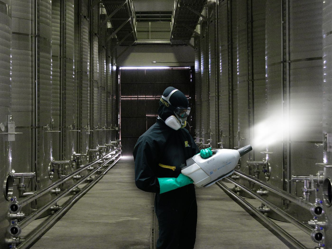 Se utilizan aparatos mecánicos o eléctricos capaces de generar gotas de un grosor entre 50 - 100 micras. Forman una niebla húmeda que, con el tiempo, se va decantando sobre las superficies tratadas. No es una aplicación dirigida, pero tiene la ventaja de penetrar por zonas a las que no se llegaría con la aspersión.