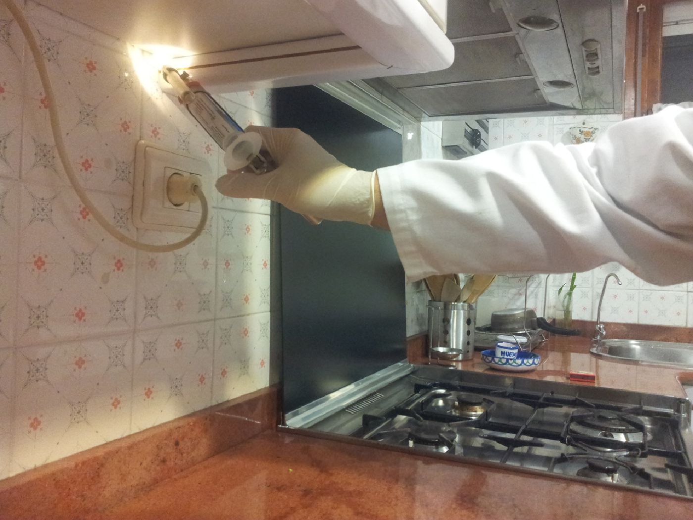 Método utilizado para controlar poblaciones de cucaracha o hormigas principalmente, las maquinas que se requieren son pistolas manuales de aplicación de geles, este método es empleado en instalaciones en las que de una u otra forma se manipulen alimentos.